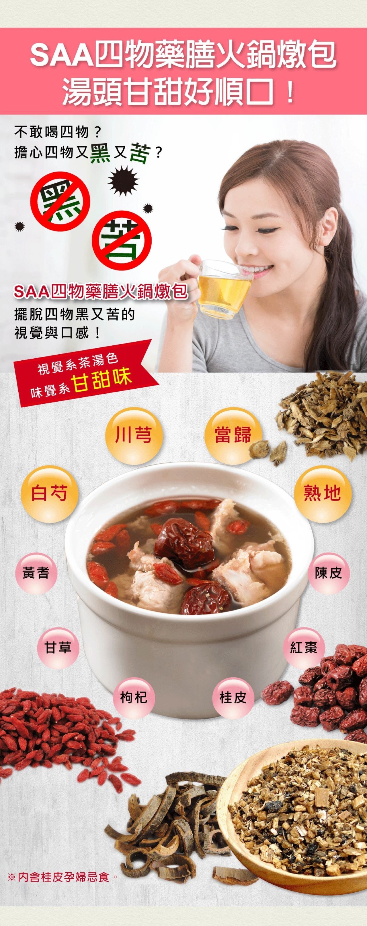 成分:當歸・黃耆、川芎、甘草、熟地、桂皮、白芍、陳皮、紅棗、枸杞