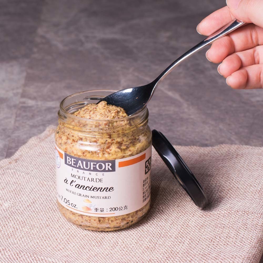 行家級料理,得先選對醬料!嚴選頂級芥末子,以獨特製法結合傳統配方,調和而成獨樹一格的法式芥末醬,細細的口感,是正統法式料理最不可或缺的美味關鍵,濃郁飽滿辛香,風味溫和柔順,可調製成沙拉醬,或搭配牛排、豬腳,及重口味的紅肉一同品嚐,不僅清新爽口,更能去油腥解膩,帶給你前所未有的味覺饗宴,一嚐就會徹底愛上!