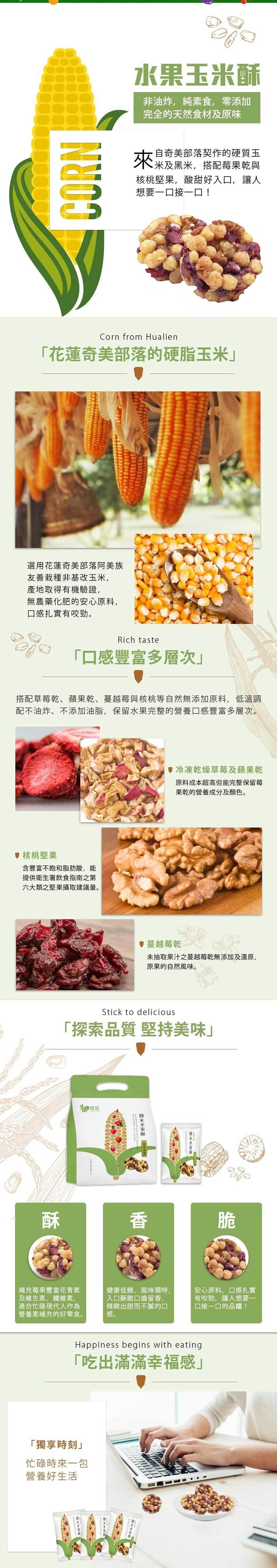 選用來自花蓮奇萊部落的契作硬質玉米,為純粹台灣原生種,無進口玉米基改疑慮。