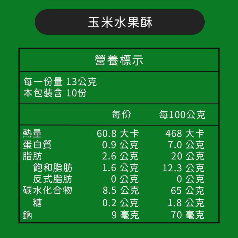 品名:粗味玉米水果酥