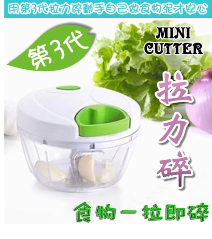 您還在拿著菜刀切切切、剁剁剁嗎?廚房第三代不鏽鋼拉力碎,採用430不鏽鋼製成月彎型刀片,片狀設計堅靭耐用,堅果類等硬食材也能輕鬆切成粉狀、搗成泥,一架三片頭刀一拉即可切出36刀,加快切碎速度,讓您製作醬料、餡料、粥品、果汁等料理更輕鬆美味!