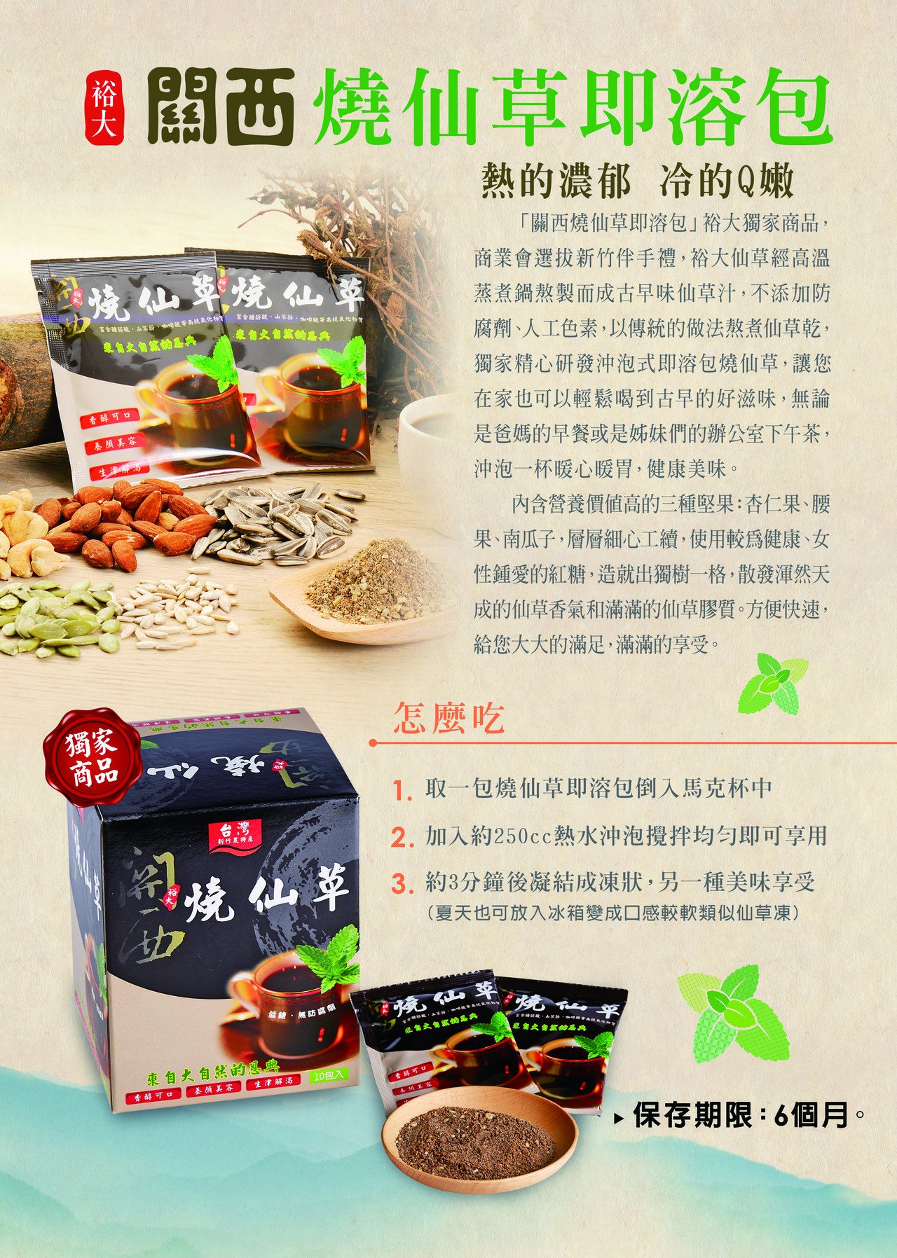 食用方式:加入約250~300cc熱水沖泡1-3分鐘即可享用熱呼呼溫暖人心的燒仙草,冷