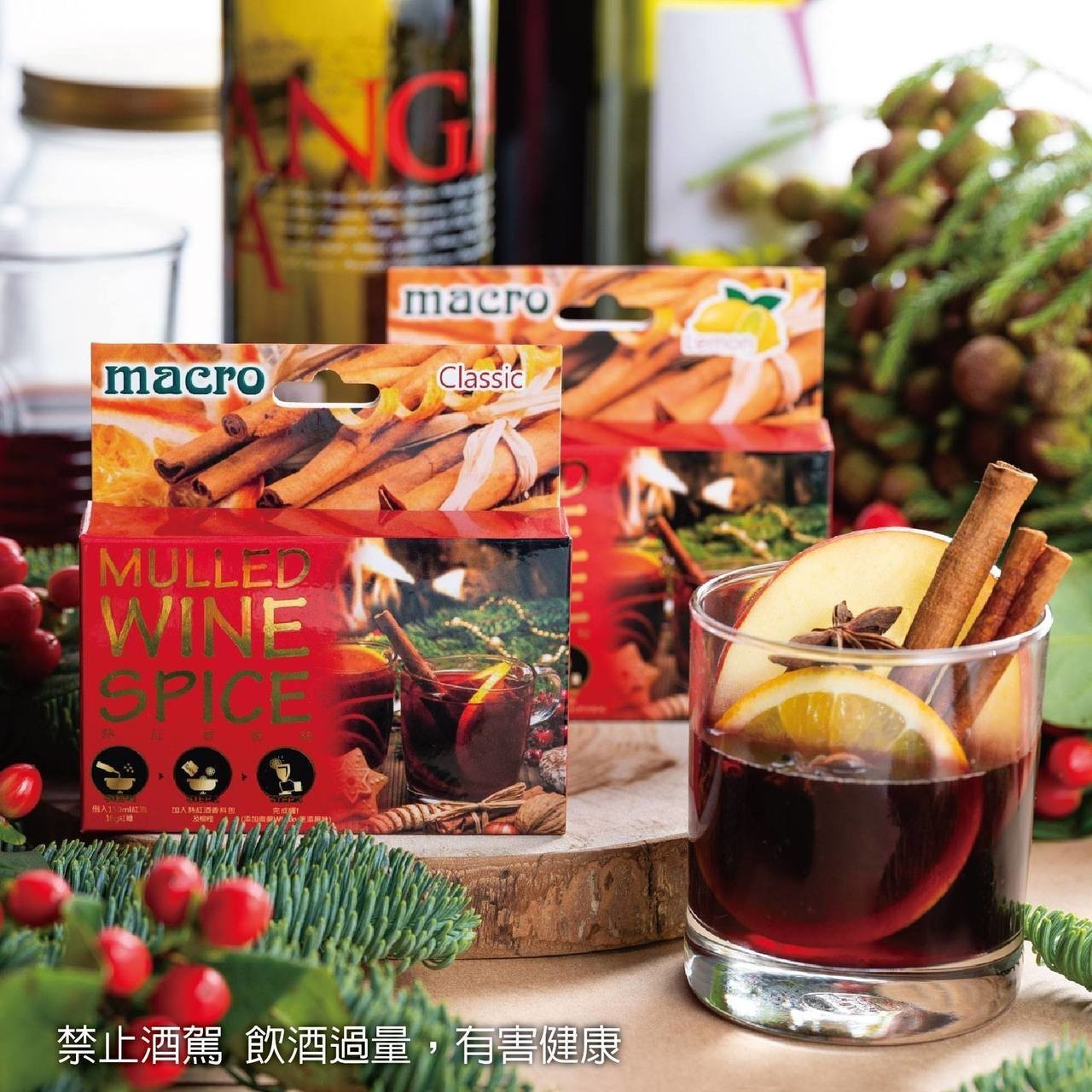 鍋內倒入375ml紅酒,再加入macro熱紅酒香料,可依個人口味增添糖。小火慢煮10分鐘不要煮滾,避免酒精蒸發,最後將香料取出,保溫即可飲用。