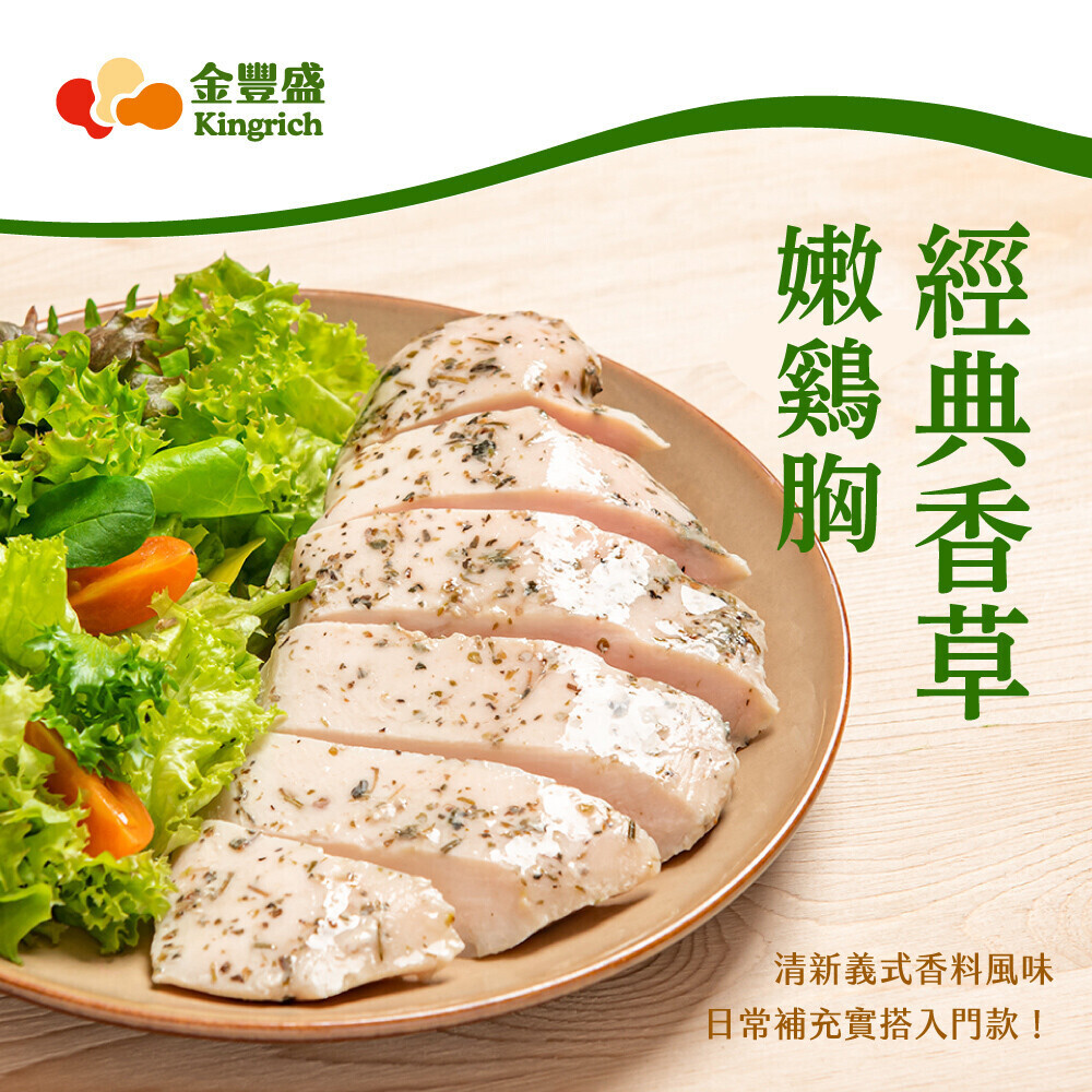 專業烹調設備,中心溫度達禽肉烹煮標準 74 ℃,美味更安心 金豐盛經典嫩雞胸,給你蛋白質補充的即刻應援! 經典蒜鹽口味,台式蒜香及黑胡椒點綴,保留雞胸低脂的清爽滋味。