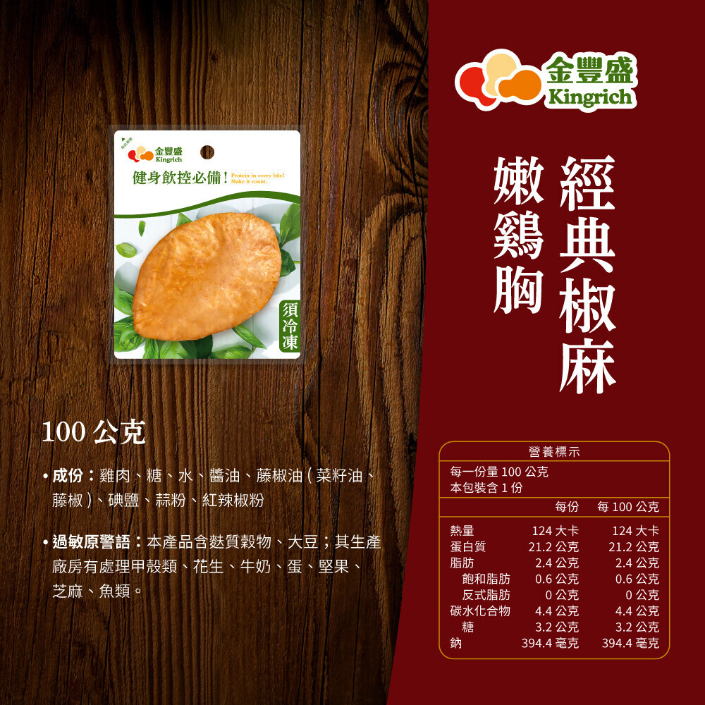 品名:金豐盛經典椒麻嫩雞胸/100g