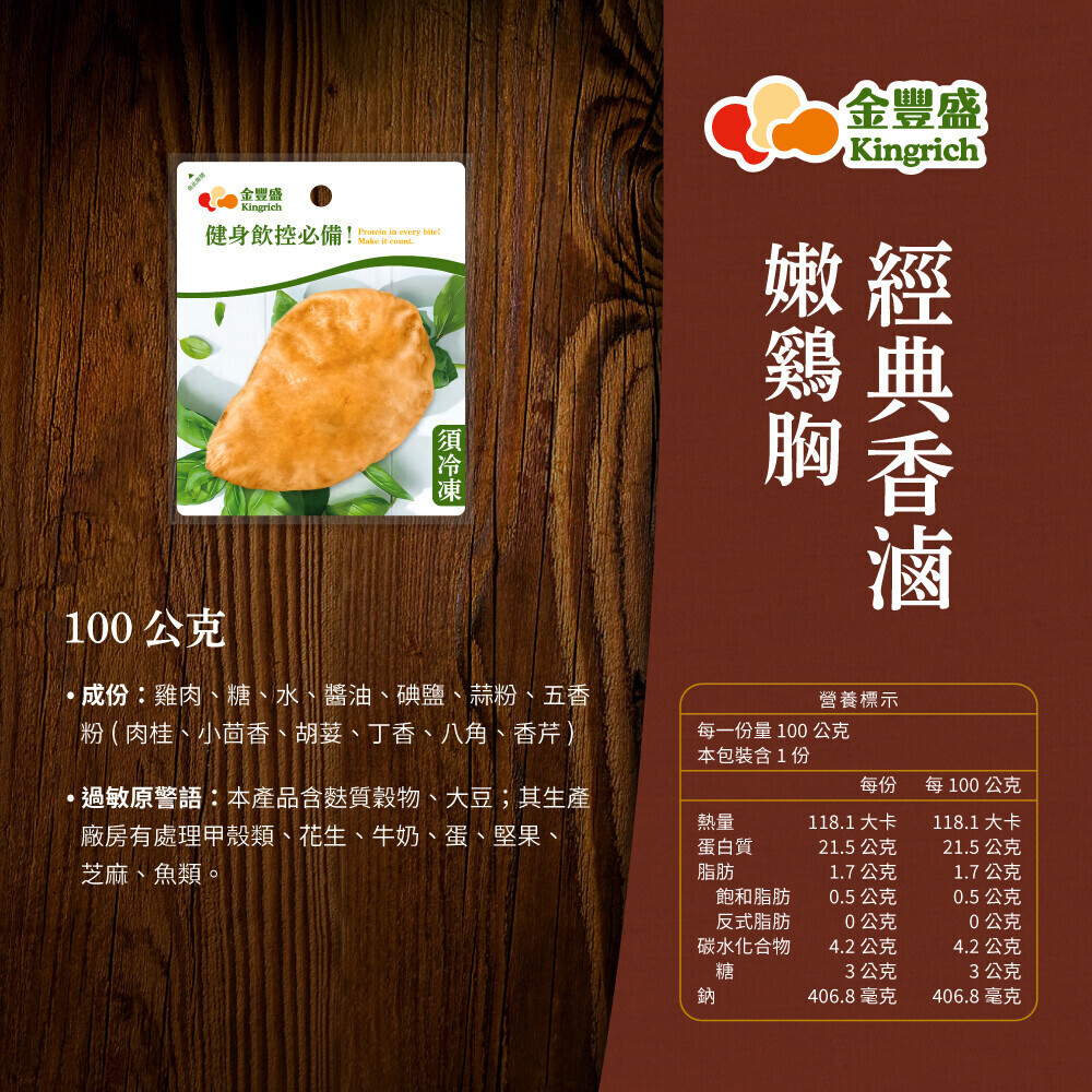 品名:金豐盛經典蒜鹽嫩雞胸/100g