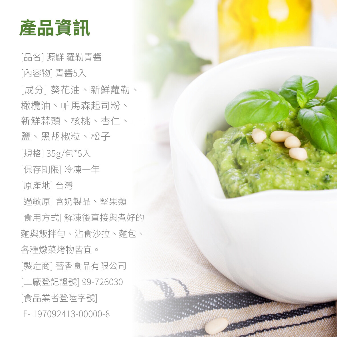 品名:源鮮羅勒青醬