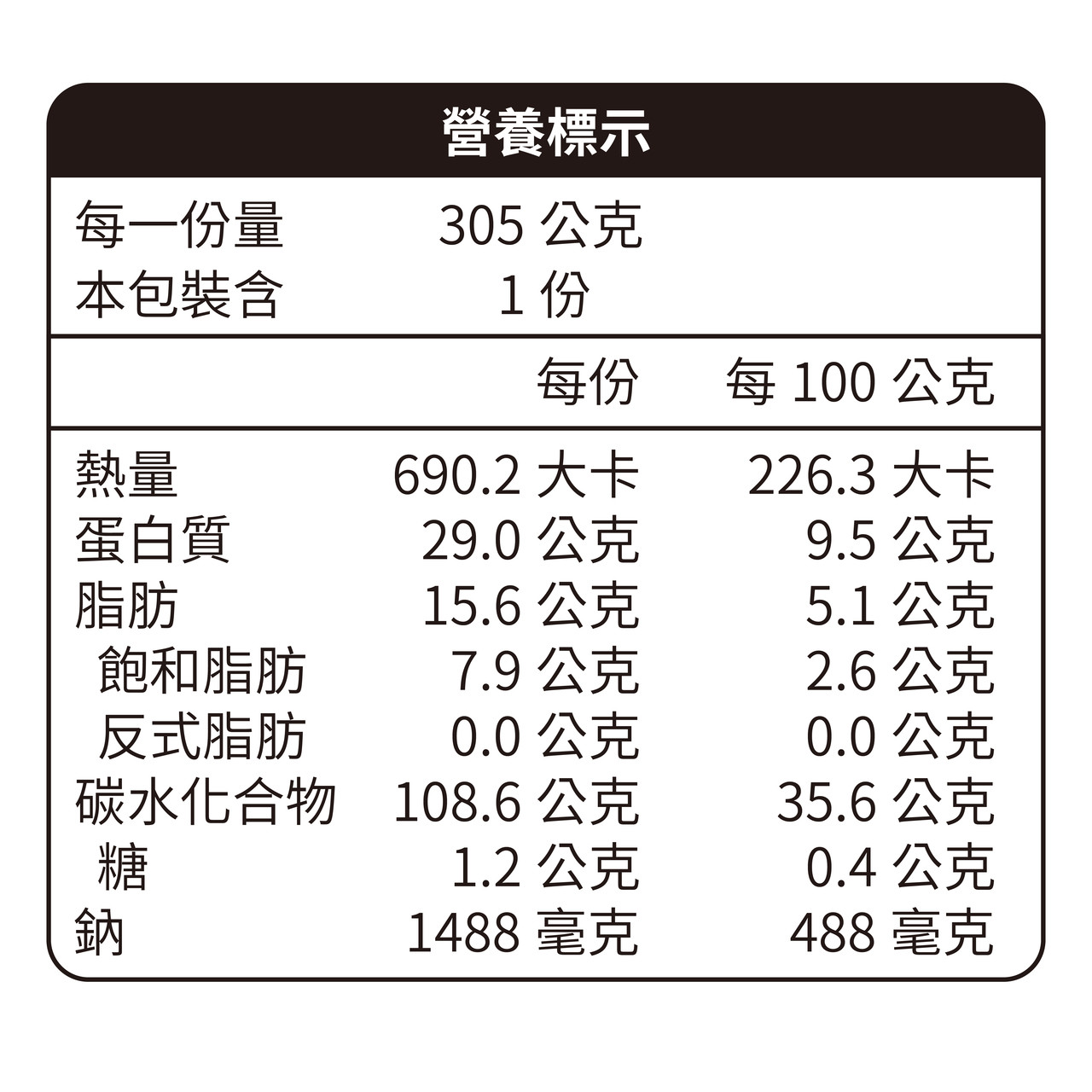 規格: 305g±10g/2-3人份
