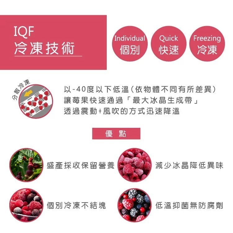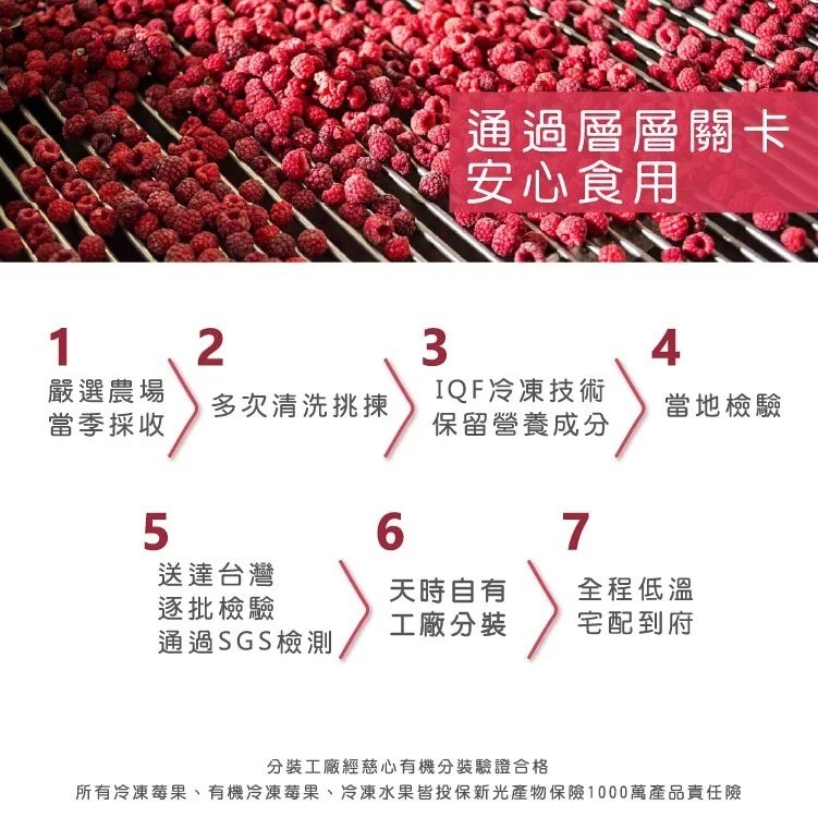 ⭐ 冷凍莓果: 1) 不用清洗,微解凍即可食用 2) 急速冷凍,可長時間保鮮 3) 當季採收,一年四季想吃就吃 4) SGS檢驗合格,安心食用