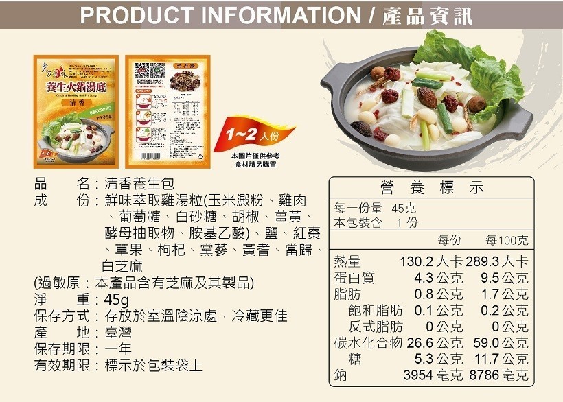 品名:東方韻味清香鍋湯底