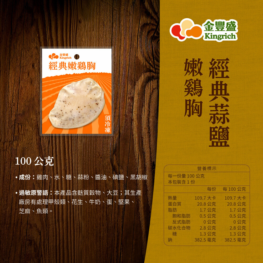 品名:金豐盛經典蒜鹽嫩雞胸/100g