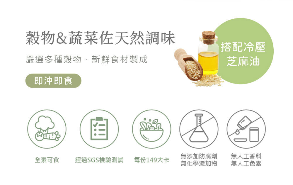 。嚴選多種穀物、新鮮食材製成