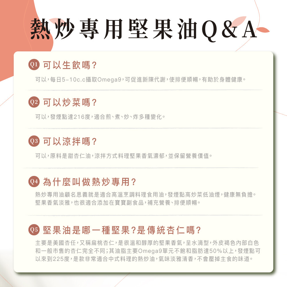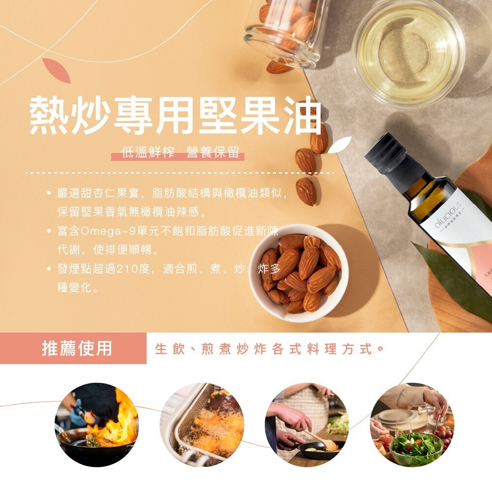 ‧杏仁堅果香氣層次豐富,非常適合日常料理、烘焙、調製醬料使用。
