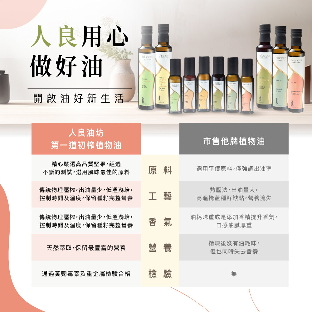 ∎100%無添加、無萃油,只萃取第一道初榨油,保留『油』最佳的天然活性與營養。