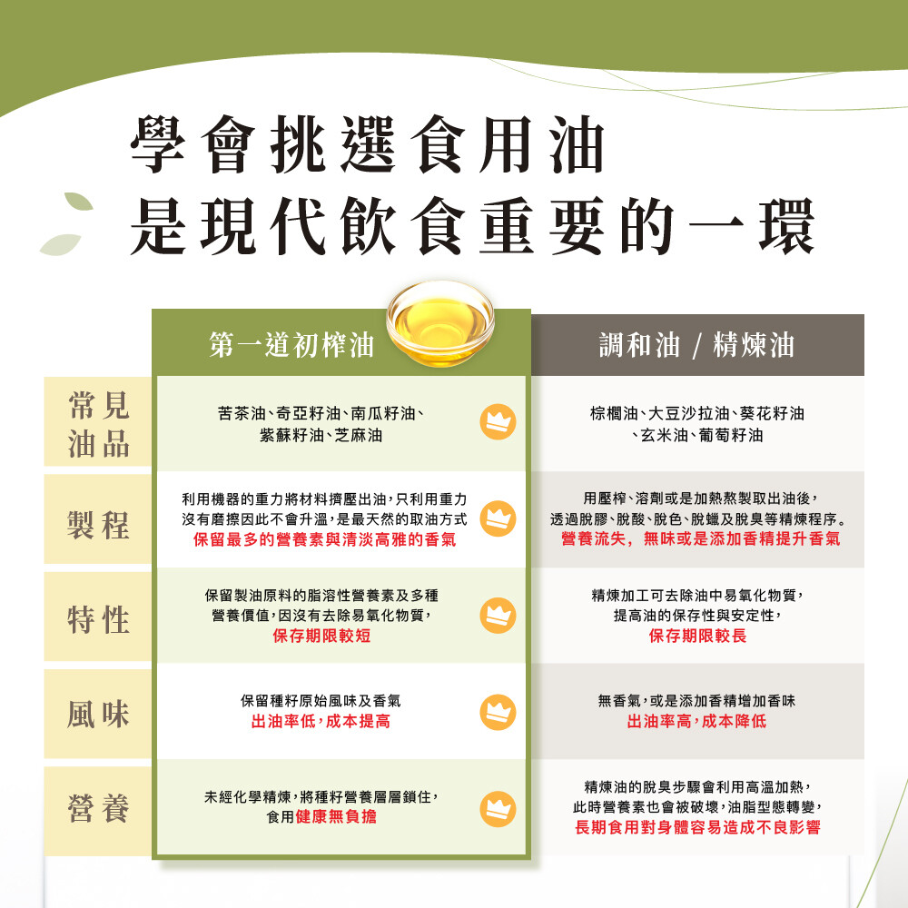 ∎100%無添加、無萃油,只萃取第一道初榨油,保留『油』最佳的天然活動與營養。