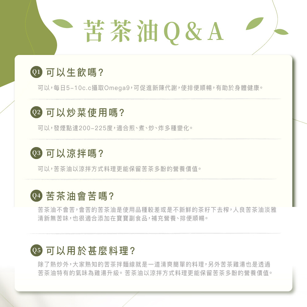 ‧透過專業輕焙製程,完整保留茶籽的茶香與花果香氣與營養,純重力壓榨萃取出苦茶精華,清爽不膩口。