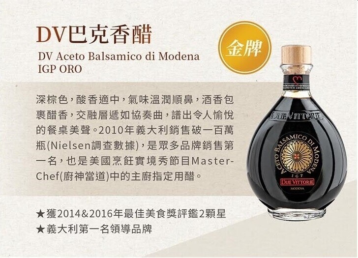 ✦ 連續蟬聯義大利紅酒醋銷售第一寶座,獲得 義大利NO.1紅酒醋 美譽