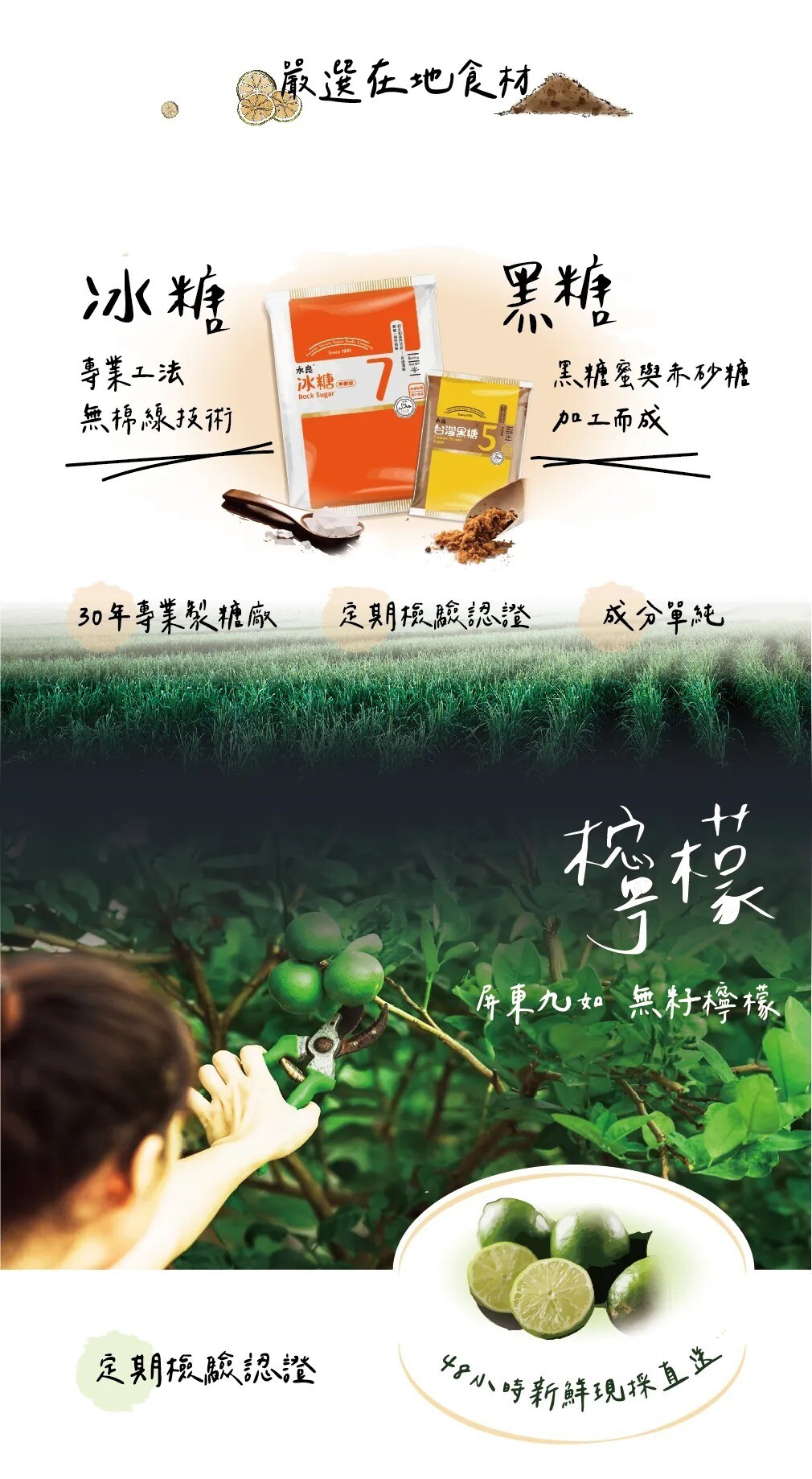 產地:採用南台灣九如鄉的翠綠無籽檸檬
