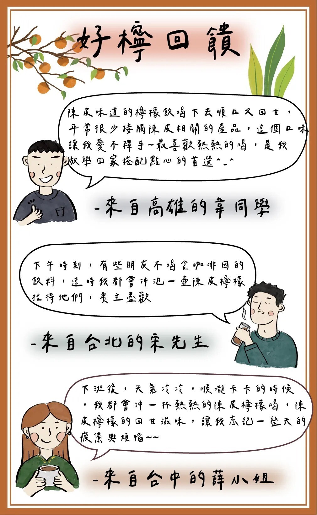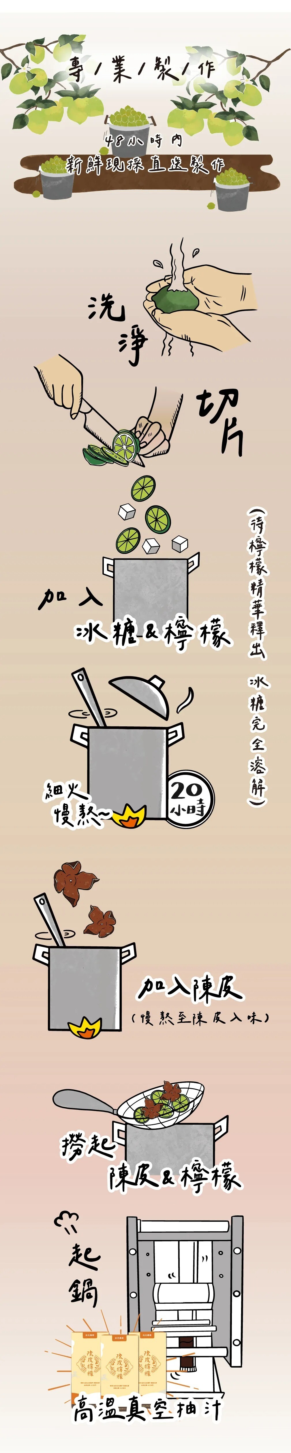 產地:採用南台灣九如鄉的翠綠無籽檸檬/香港陳皮