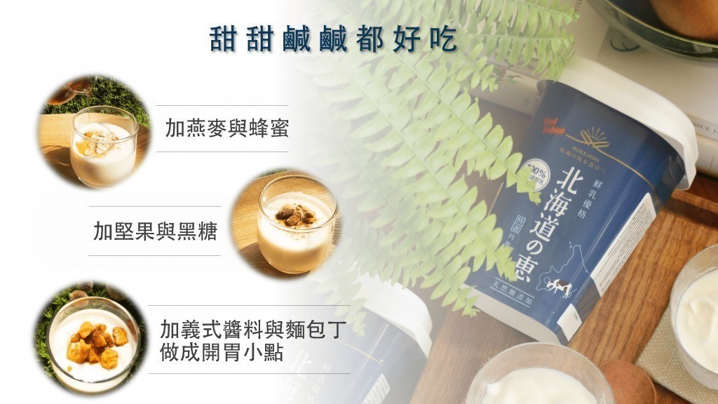 無添加砂糖、香料、增黏劑等食品添加物,除了提供人體所需的優質蛋白質與鈣質,豐富的活性乳酸菌等益生菌,可幫助增加腸道好菌並平衡腸道菌叢生態,有助於腸道保健。既能品嘗真實的北海道乳香,亦能帶給身體健康,建議每日適量食用。