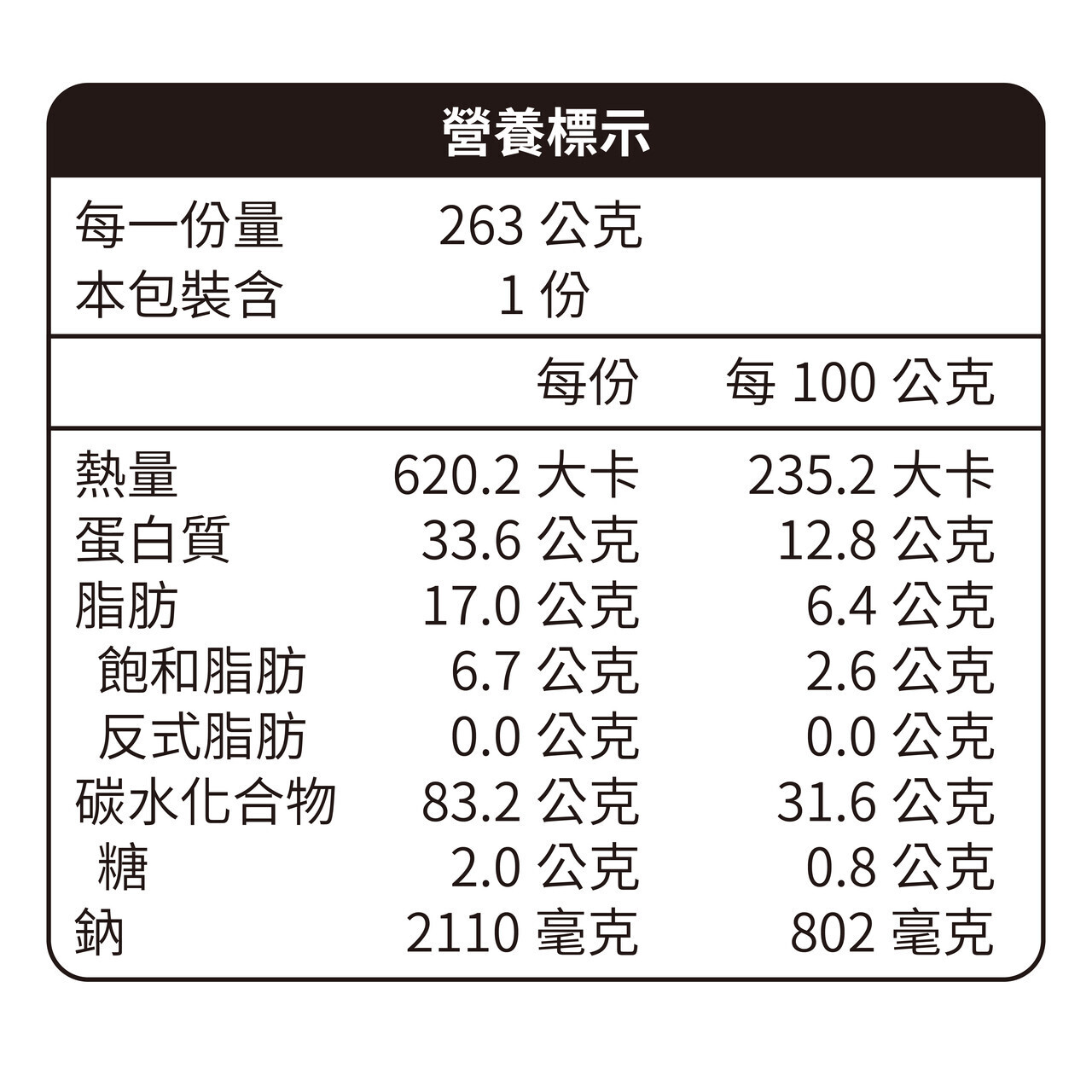 規格: 260g±10g/2-3人份