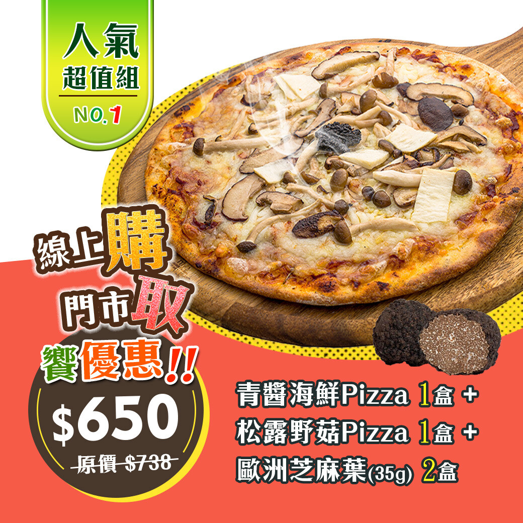 商品特色:安心青醬、台灣高品質小麥麵粉、馬扎瑞拉天然起司、飽滿的海鮮配料,CP值超高。