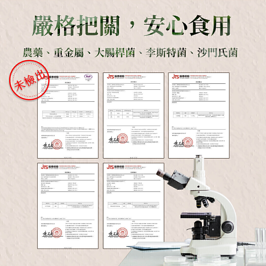 五項未檢出:農業、重金屬、大腸桿菌、李斯特菌、沙門氏菌
