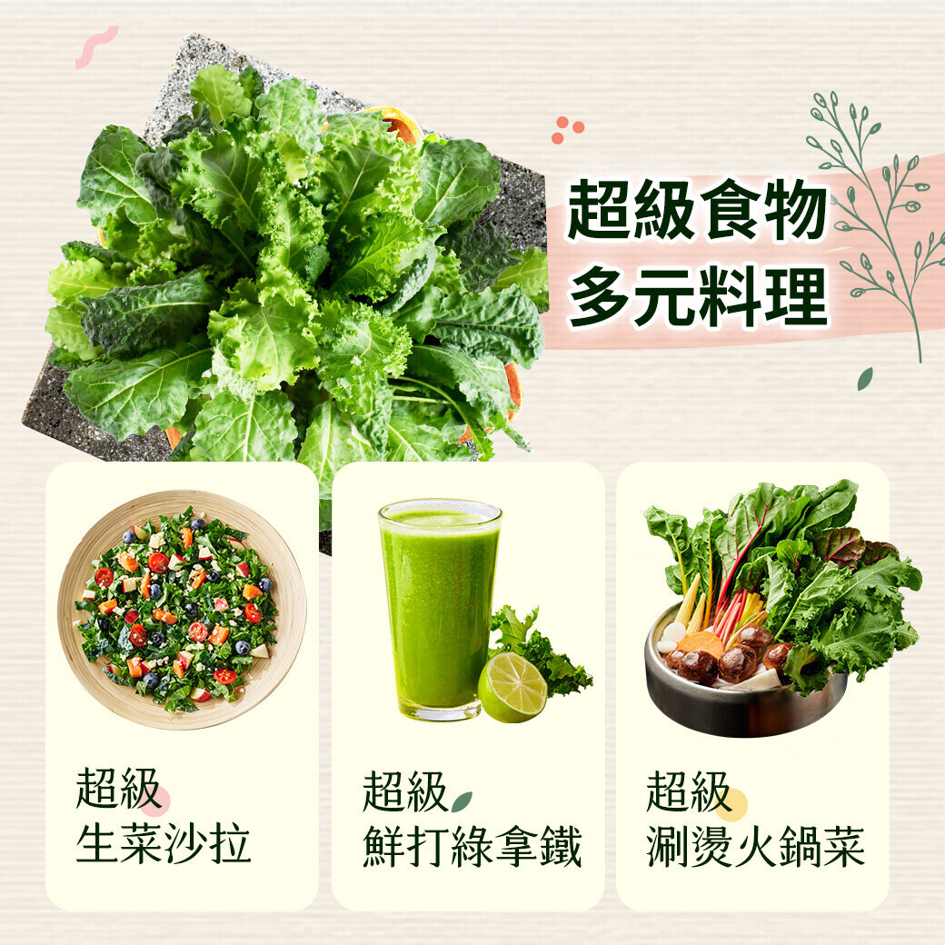 •比包菜羽衣甘藍更嫩口、不易壓傷保鮮更完整
