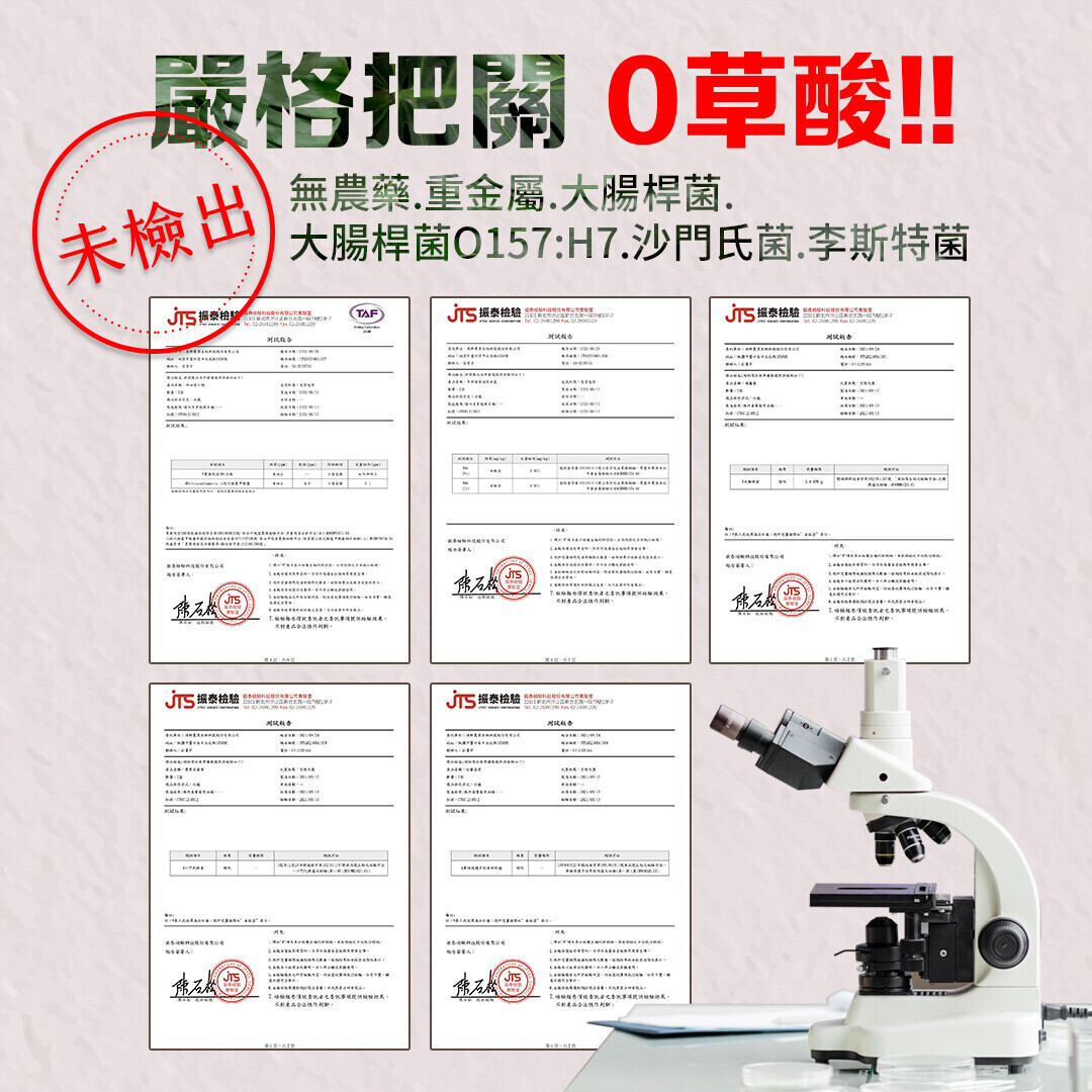 •6項零檢出-農藥、重金屬、大腸桿菌群、 大腸桿菌O157:H7、李斯特菌、沙門氏菌