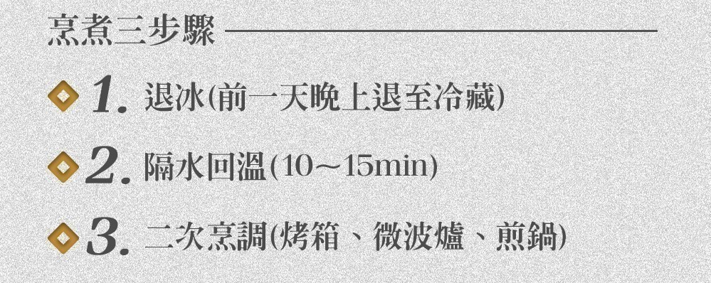 1. 退冰:前一晚將肉品放置冷藏退冰或是走水退冰(不建議室溫退冰)